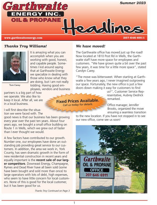 The Garthwaite office has moved just up the road! Now located at 1810 Post Rd in Wells, the Garthwaite staff have more space for employees and customers. “We have grown quite a bit over the past few years, it was time for a little more space”, stated GW President, Tom Carey. “The move was bittersweet. When starting at Garthwaite a few years ago, I never imagined outgrowing our space. Fortunately, the new office is just a few doors down making it easy for customers to find us!”, Customer Service Representative, Aubrey Dedrick remarked. Office manager, Jennifer Brooks, organized the move ensuring a seamless transition to the new location. If you have not stopped in to see our new office, come see us soon!